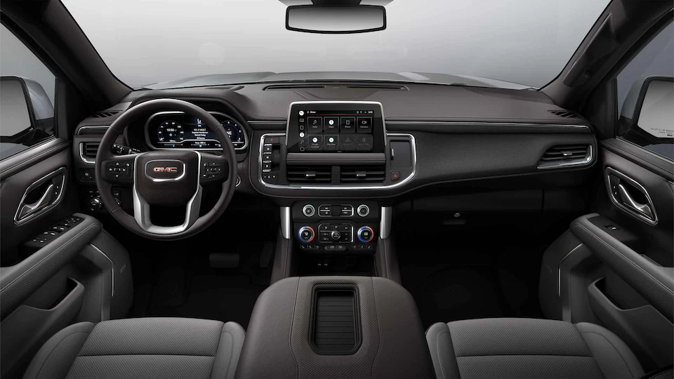 GMC's infotainment system comes with a 10.2-inch touch screen with wireless Apple CarPlay and Android Auto compatibility. Additional technology features include a Wi-Fi hot spot, a wireless charging pad, and a 14-speaker Bose sound system found on the Denali trim.